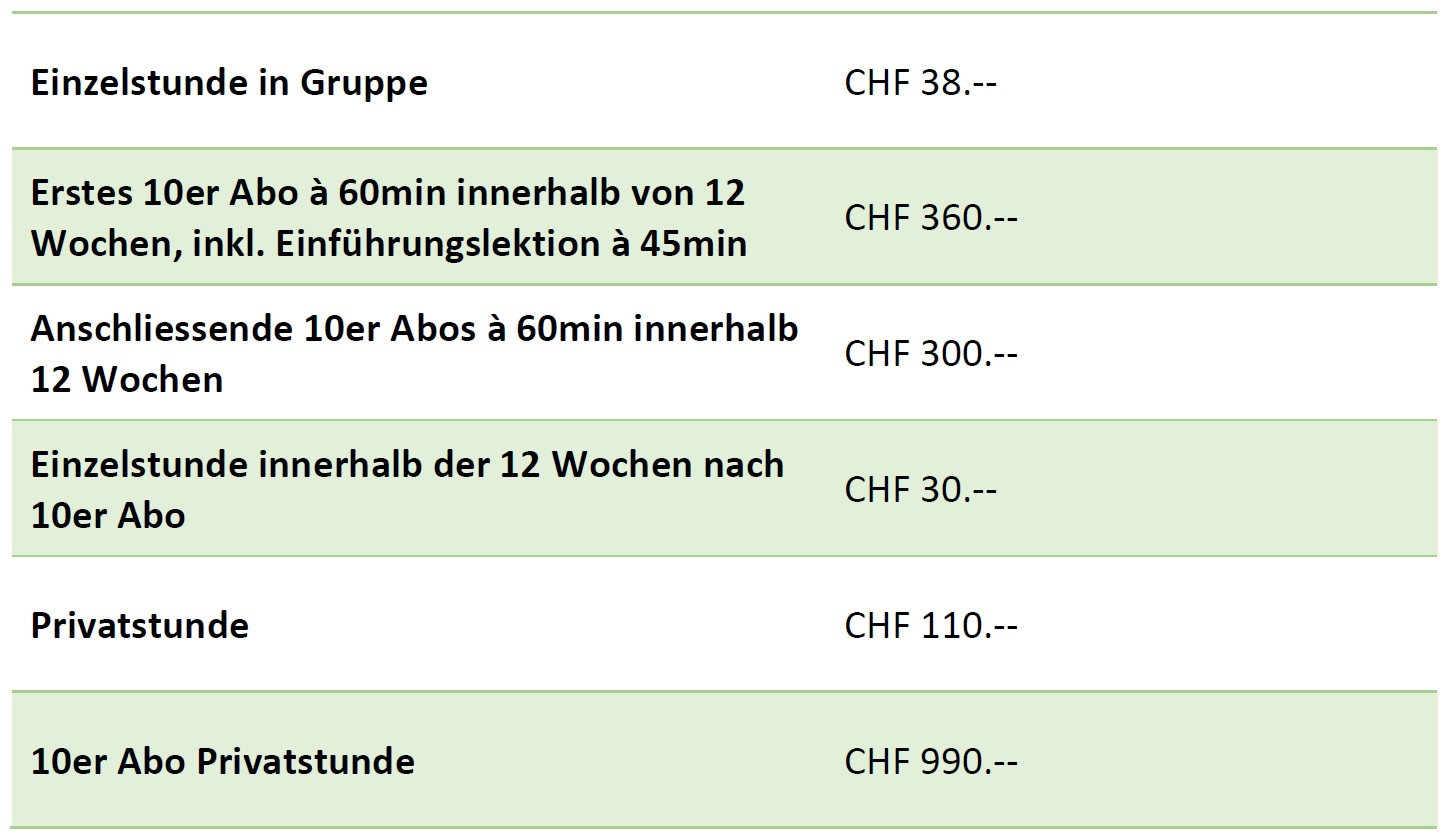 Eine Schnupperlektion ist auf Anmeldung immer möglich.